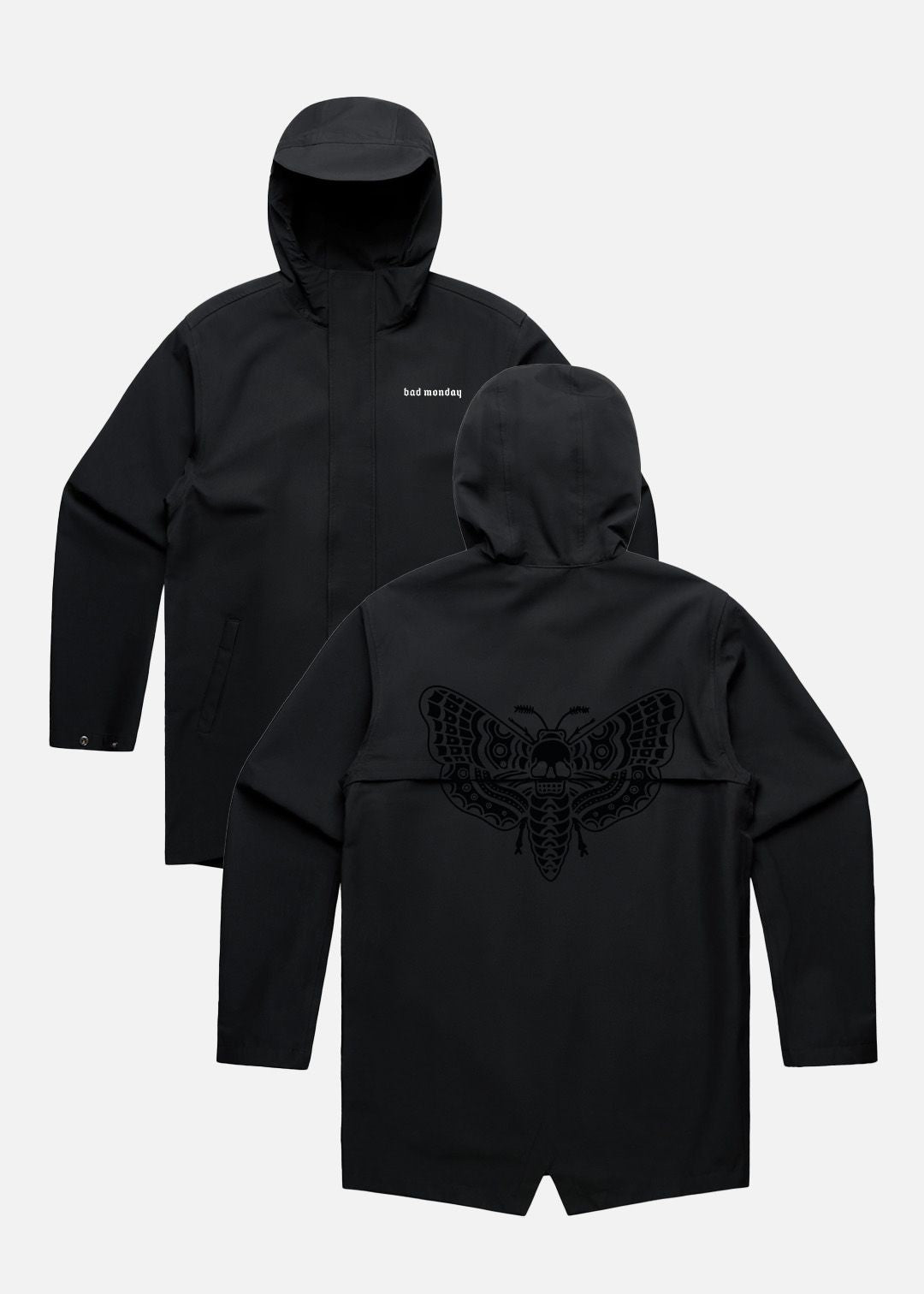 Our regular fit Death Moth Tech Jacket features side pockets and a peaked hood. A must have for the Spring, the jacket is lightweight and showerproof. Finished with our iconic Death Moth print.