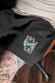 Sweat Shorts, self-fabric elasticated waistband, tonal internal drawcord, 2 side pockets, single pocket at back, double needle hems